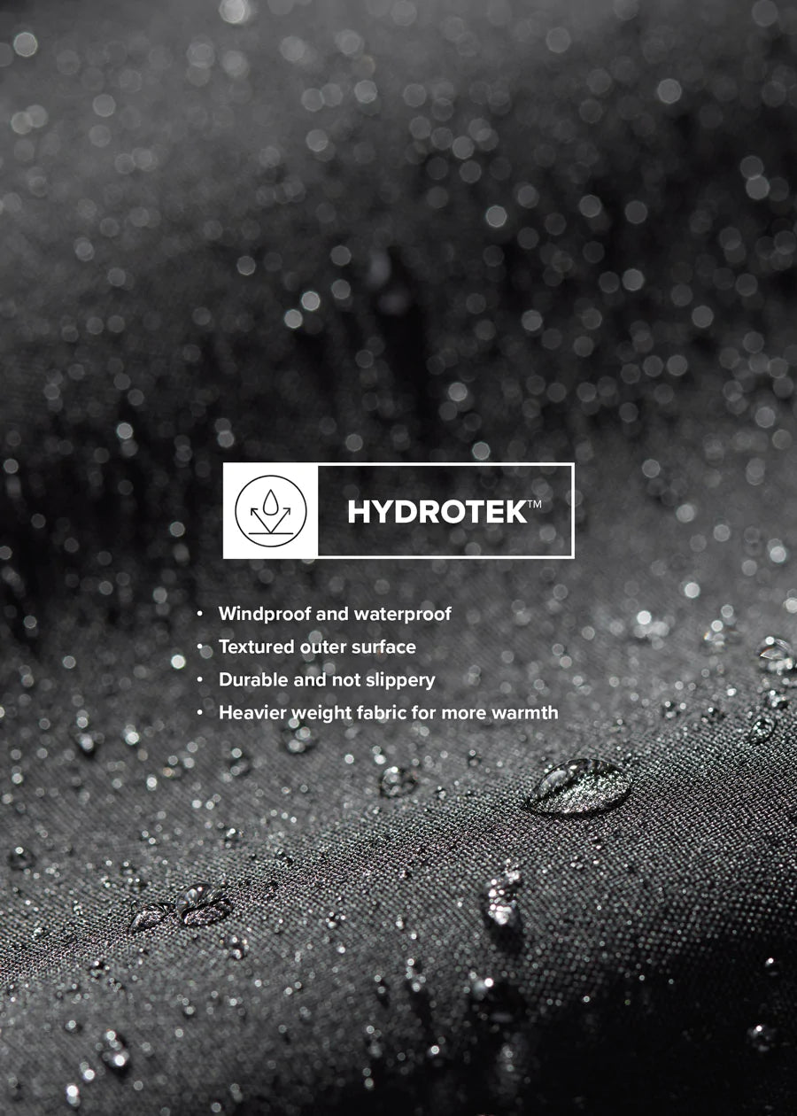 - HydroTek™ fabric is waterproof and fully seam sealed for complete protection from rain and wind